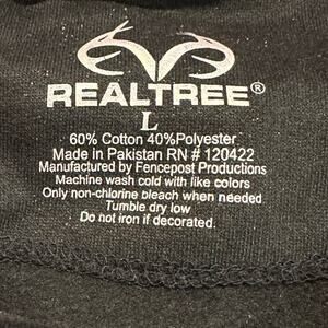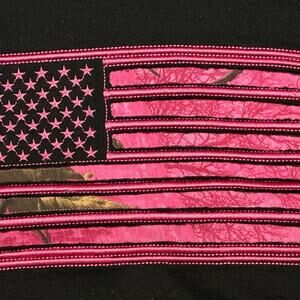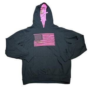 Get ready to stay cozy and stylish with this Realtree women's hoodie! This size large black hoodie features a unique pink camo flag design and a matching camo hood lining. It's perfect for adding a touch of outdoorsy flair to your wardrobe.
