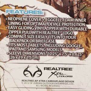 Realtree Xtra Colors 10" Neoprene Tablet Sleeve/Cover, NWT