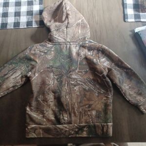 good use condition no fading no holes no stains or tears it's a pullover jacket with the pocket on the front my son just outgrew it it's a size 3T no smoking no pets