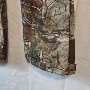 This green camo Realtree Extra "Scent-Factor" fleece lined men's hunting pants are a size XL with an elastic waist measuring 44" and an inseam of 32". Two front pockets, two zippered leg pockets and one zippered back pocket. Zipper and snaps on both leg cuffs. Pre-owned and in excellent condition. All offers are welcome.