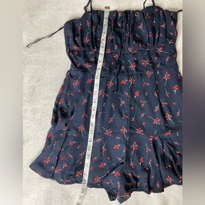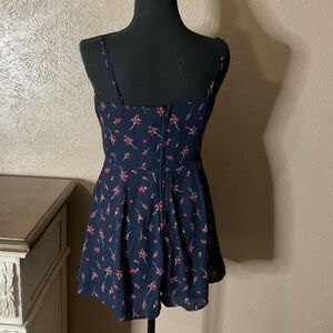 Stylish navy dress with red floral patterns. Perfect for any occasion.