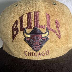 Rear Mitchell & Ness Hat/Cap SnapBack Chicago Bulls Tan/Brown Suede Like EUC