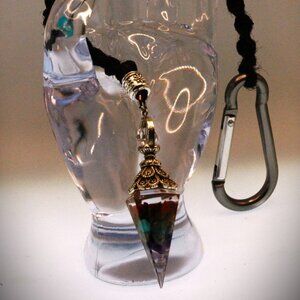 This Rear-view Mirror Pendant by Knotty Girl Hemp Jewelry & Art is a stylish and practical accessory for your car. The pendant features a black hemp chain with a 14" length and a convenient carabiner clip for easy attachment to your rear-view mirror. This unique pendant not only enhances the look of your vehicle but also provides a secure attachment for your mirror, ensuring you can easily see behind you while driving. Perfect for adding a touch of style to your car's interior.