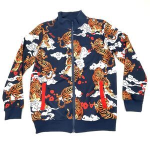 Reason Brand Track Jacket Mens S Blue Tiger Clouds Full Zip All Over Print NEW