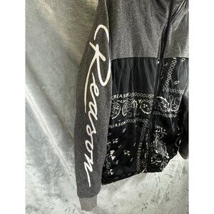 Reason Brand sweatshirt Men's Medium Black & Gray Hoodie "Reason" Sleeve Print