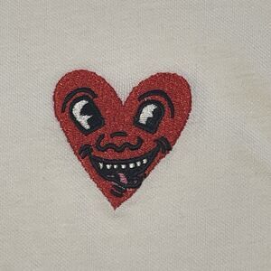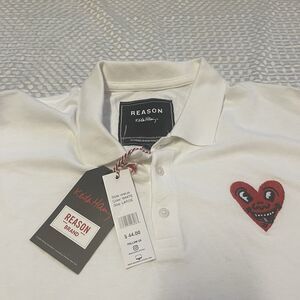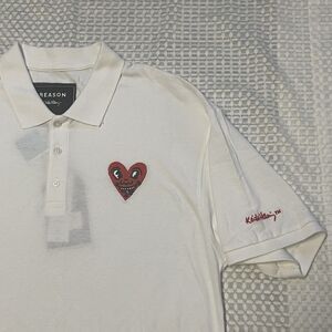 Reason Clothing Keith Haring Embroidered Heart Polo Shirt White Men Lrg New Tag