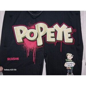 Reason Clothing Popeye Sweatpants Black Size Small Exclusive Collab Fleece