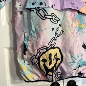 Reason Clothing Sz Med Windbreaker Coat Jacket Designed in NYC Hooded Graffiti