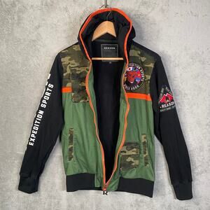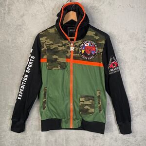 Reason Expedition Sports Camo Green Full Zip Bear Hoodie Jacket Size Small