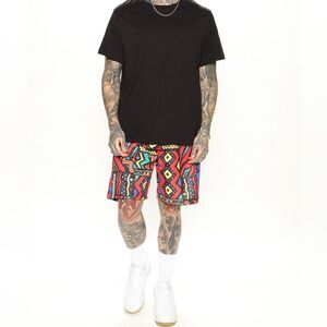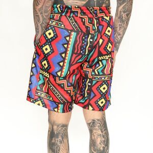 Reason Geometric Red Yellow Blue Shorts Drawstring Size Medium NWT