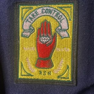 Navy Blue / Brown Letterman’s Jacket By Reason Brand. Size S. In New condition. Worn only once by artist for music video. Apart of a stylist wardrobe. Very nice 🔥