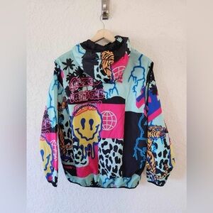 Reason Medium AOP Allover Print Half Zip Anorak Pullover Jacket Smiley Tiger
