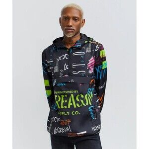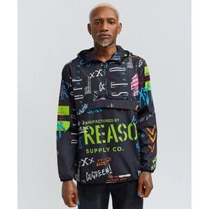 Reason Men’s Allover Print Space Graffiti Half-Zip Anorak Hooded Jacket Size L