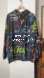 Dynamic windbreaker with striking graphics. Features a mix of black, blue, green, orange, and pink.