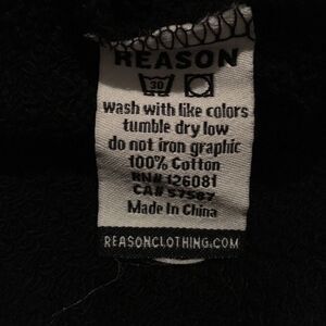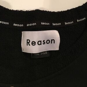 Reason O/S black graphic sweatshirt Advisory Expensive Content. Lay flat measurements shoulder to front hem 19.25 inches, shoulder to back hem 20.5 inches, underarm to underarm 18.25 inches in gently used condition