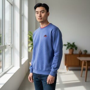 Reason Sweater Mens Large Blue Crewneck Pullover Mountain Patch Logo New NYC
