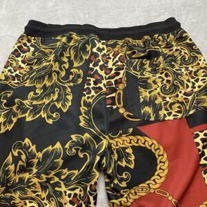 Reason Sweatpants Joggers Mens M Black Red Poly Knit Animal Print Old Money