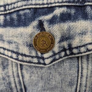 Reason Terra Acid Light Washed Denim Jean Jacket With Patch Detail Size Medium