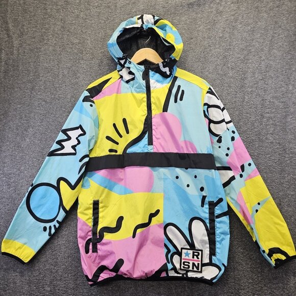 Reason Windbreaker Rain Jacket Size L All-over Print Keith Haring Style Pop-Art