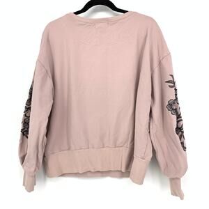 Reath & Wren Pullover Sweatshirt Womens XL Light Pink Embroidered Floral Sleeves