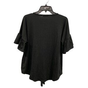 Reb In J Button Front Blouse Size Small Ruffled Sleeve Knot Front Black Feminine