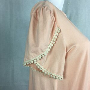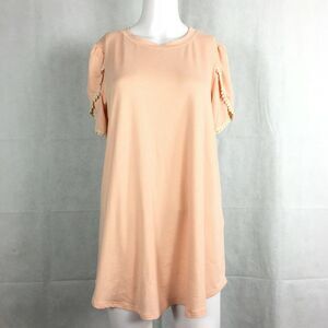 Reb in J 220 Shirt Womens Sz M Peach Flowy Short Sleeve Knit Tunic Top Lace Trim