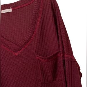 Reb in J 220 Wine Burgundy Maroon Waffle Knit Top Oversized for Comfort