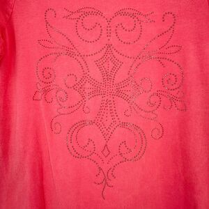 Reba Aried Stone Embellished Short Sleeve Shirt Womens Size Large Rose Pink