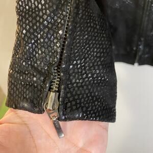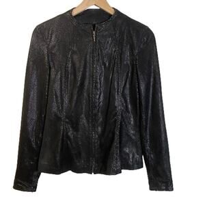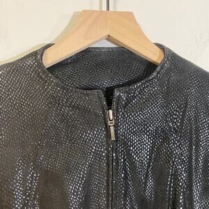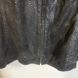 Reba Black Vintage Fitted Leather Jacket Shinty Snakeskin Texture Full Zip Sz 4