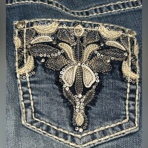 Stylish Reba dark blue straight leg jeans. Embroidered and Sequin pockets. In excellent condition. Perfect for Rodeo or Cowgirl chic or everyday wear