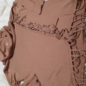 Reba cowl neck fringe sweater top Caramel color New with tags