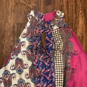 Reba Printed Crepe Embellished Embroidery Halter Dress