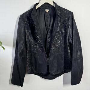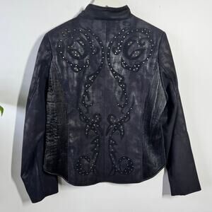 Reba Jacket Women XL Black Faux Leather Gromit Embroidery Western Boho Biker