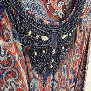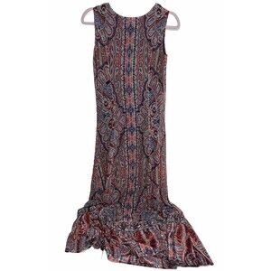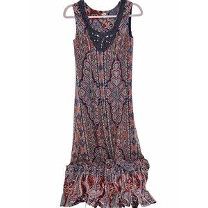 Reba Maxi Dress Red Paisley Rhinestone size S Sleeveless Fit & Flare Ruffle Boho