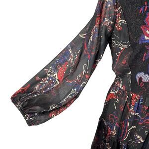 Reba Medium Midi Dress Paisley Long Balloon Sleeve Embroidered Lined Tasseled