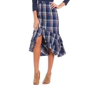 Reba Midi Skirt Size 8 Blue Plaid Ruffles Prairie Rodeo Coachella Festival