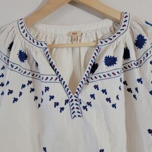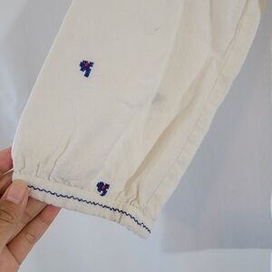 Reba Off-White Blue Embroidered Boho Top Sz S Ballon Sleeve Minimalist Peasant