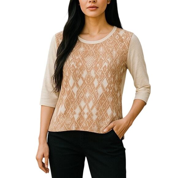 Designed with a hi-low silhouette and ruched sleeve cuffs, it combines comfort and contemporary style. Crafted for a medium fit, this blouse pairs effortlessly with jeans, skirts, or shorts for a bold, boho-western look.