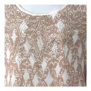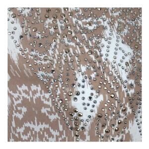 Saddle up in style with this Reba On The Horizon western blouse, a perfect mix of country flair and modern sparkle. Featuring a white/off-white base with tan western patterns and rhinestone embellishments, this top brings the perfect pop of glam to concerts, festivals, or western-themed events.