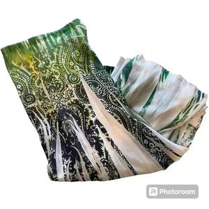 Perfect and versatile for western, festival, or boho vibe look depending on how you accessorize! Shine in comfort with this flowy, pleated, lined, elastic waist skirt. Size 3X EUC Multicolor (green, blue, white) Ombre colors