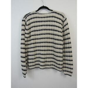 Reba Rose Medium Vintage 1990s Knitted Striped Cardigan Sweater Cotton Neutrals