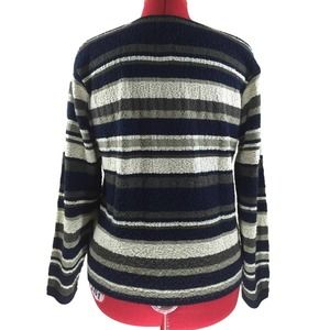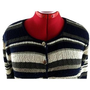 Reba Rose Striped Cardigan Sz L Cotton Like Acrylic Knit Boho Sweater Vtg USA
