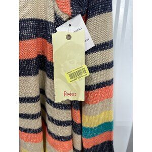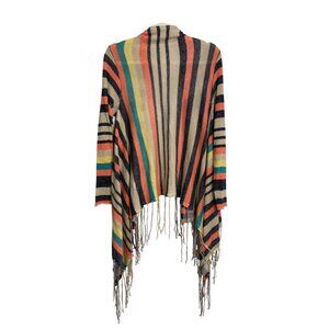 Reba Striped Fringe Open Front Cardigan Size XL Multicolor Indie Boho Hippie NWD