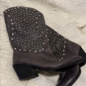 Chic Reba boots with striking studs. Charcoal hue adds elegance. Perfect for stylish outings.