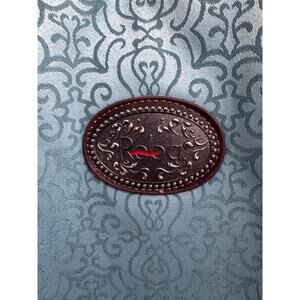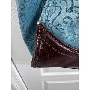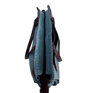 This stylish and spacious Reba tote, carry all, travel bag features a baroque teal blue design with dark brown trim. Dual handles and zip closure keep your essentials secure while adding flair to your look. Perfect for everyday use and easy to pair with any outfit.