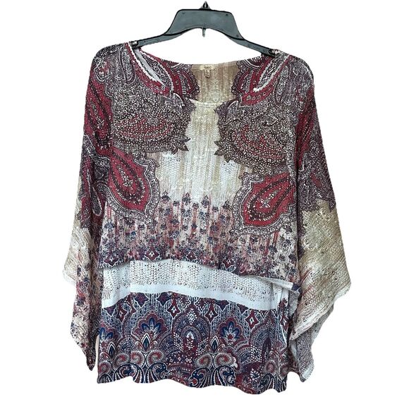 Reba Top Attached Poncho Large Western Boho Rhinestone Stretchy Made in USA