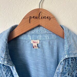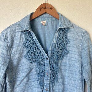 Reba Top Womens Small Blue Embroidered Lace Trim Studded Button Up Blouse S