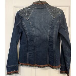 Reba VTG 90’s Denim Jacket Small Blue Embroidered Cowgirl Western Studs Fringe