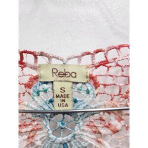 Reba Womens BOHO Tunic Top Small Orange Blue Lace Paisley Rhinestone Long Sleeve