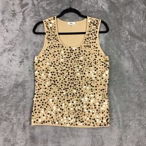 Reba Women’s Gold Sequin Knit Sleeveless Tank Top Blouse Size Large